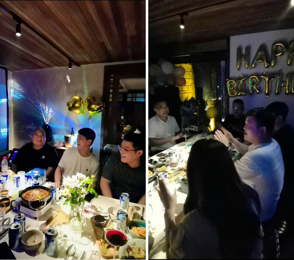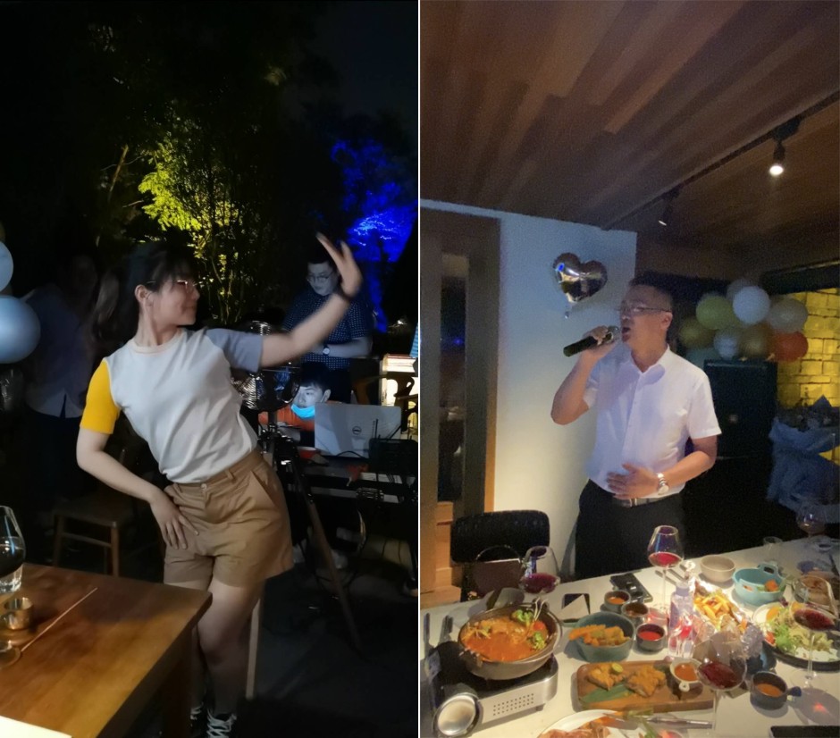 在欣賞完行政管理中心精心準備的壽星風采短視頻后,家人們開始享用美味的西餐,過程中燭光搖曳,大家載歌載舞,歡聲笑語不斷。