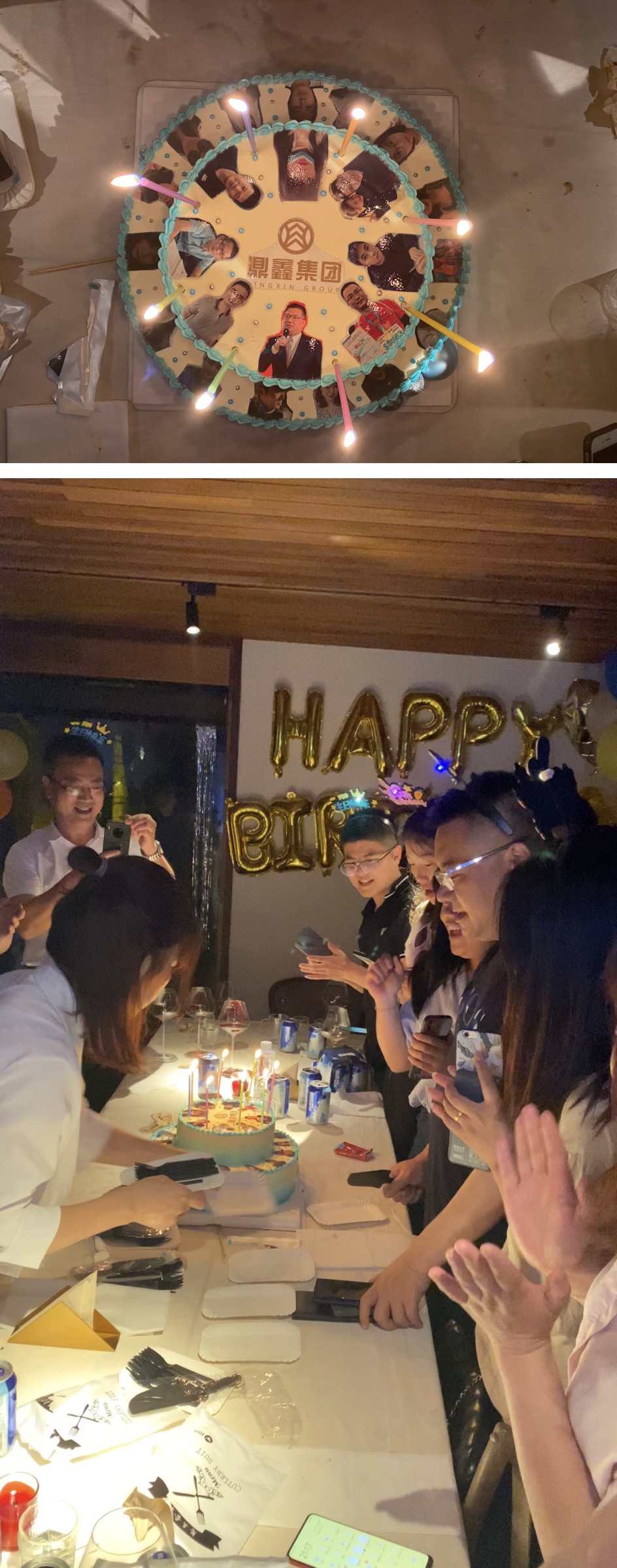 一個蛋糕象征著一個團結的集體,一支支閃亮的蠟燭象征著一顆顆跳動的心。印著20多位壽星頭像的蛋糕擺在大家的面前,星光點點映出了家人們幸福的笑臉。伴著生日快樂的歌聲,壽星們開始許愿、吹蠟燭、吃蛋糕,享受著這美妙的一刻,之后在依依不舍中結束了這場生日會。
