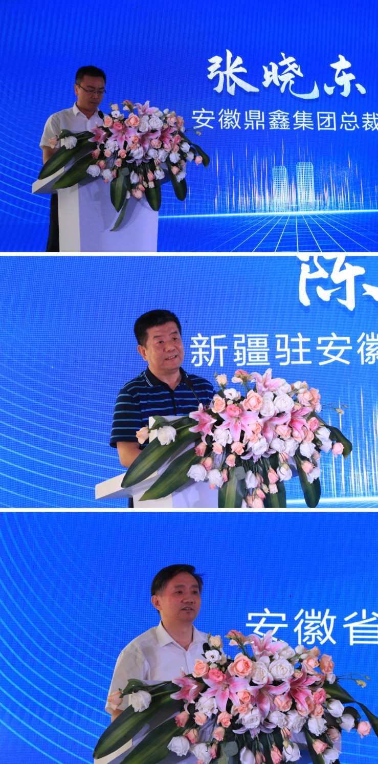 活動(dòng)伊始,活動(dòng)特邀嘉賓新疆駐安徽工作組黨委書記陳翰林、安徽省工商聯(lián)黨組成員、副主席司應(yīng)武、安徽鼎鑫集團(tuán)總裁張曉東、安徽省酷樂匯餐飲管理有限公司總經(jīng)理甄勇,分別上臺(tái)為本次活動(dòng)致開幕詞。
