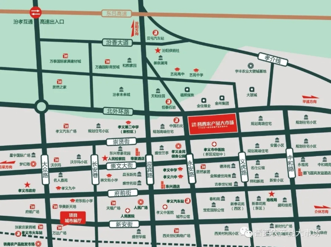 項目位于城市主干道永安路與崇賢街交匯處,雄踞孝義市城北新區發展區域。“孝汾平介靈”城鎮組群的區域中心,處于太原經濟圈節點,十五分鐘可直抵介休、汾陽等縣市。