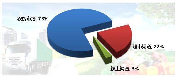 傳統農批市場依舊是人工收集數據、統計,準確度不高,時效性慢,生產和銷售配比不能準確把控,其次 傳統農批市場消費渠道主要是居民購買和超市批零,線上渠道占比很低,但是在信息化迅速發展的時代,當電商網購成為人們的消費習慣時,傳統經營模式必將轉型。