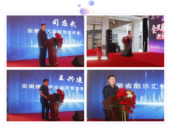 受邀出席本次活動(dòng)的領(lǐng)導(dǎo)有新疆駐安徽工作組黨委書記陳翰林、安徽省統(tǒng)戰(zhàn)部非公經(jīng)濟(jì)處處長韓永龍、安徽省工商聯(lián)副主席司應(yīng)武、合肥市委書記辦公室主任夏躍民、合肥市審計(jì)局副局長張仁山、合肥市廬陽區(qū)商務(wù)局副局長朱駿、合肥福州商會(huì)秘書長陳可逸先生、安徽鼎鑫集團(tuán)總裁張曉東、安徽捷成商業(yè)運(yùn)營管理有限公司總經(jīng)理王興建、安徽省酷樂匯餐飲管理有限公司總經(jīng)理甄勇,各位領(lǐng)導(dǎo)分別為本次開街儀式做開幕發(fā)言。