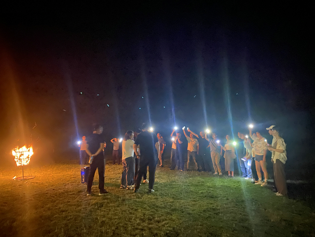 氣氛不斷升溫,現(xiàn)場(chǎng)充滿(mǎn)了歡聲笑語(yǔ)。小伙伴們圍在一起開(kāi)始了篝火晚會(huì)。